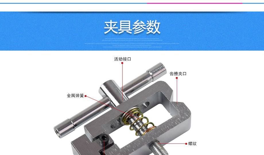 產(chǎn)品型號:JQ-025 品牌:劍 喬 用途:尖口端子夾具適用范圍:橡膠、各種線纜、紙、各種電器元件、塑料薄膜等材料的拉力,破壞力測試。